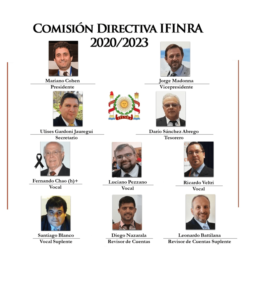 El dia 8 de diciembre del corriente año 2020, en la Asamblea Anual 2020 realizada de forma virtual a través de la plataforma «Google Meet» se realizó la elección de las nuevas autoridades del IFINRA para el período 2020-2023. Por unanimidad en la votación fue electa la nueva Comisión Directiva que quedó conformada por las siguientes autoridades: